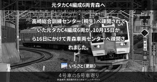 211系(東) 元タカC4編成6両青森へ 高崎総合訓練センター(桐生)へ疎開されていた元タカC4編成6両が、10月15日から16日にかけて青森車両センターへ疎開されました。 2014/10/15 いちさと 211系(東)