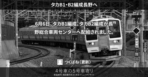 211系(東) 元タカB1編成3両青森へ 長野総合車両センターへ配給されていた元タカB1編成3両が、6月12日から13日にかけて青森車両センターへ疎開されました。 2013/06/12 つくばね 211系(東)