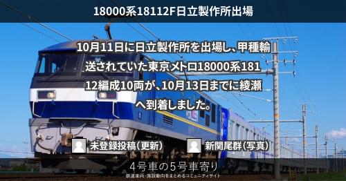 E233系トタT33編成がグリーン車2両(TsdTsd'45)を組み込み12両化され、10月18日に国府津車両センターから豊田車両センターまで回送されました。