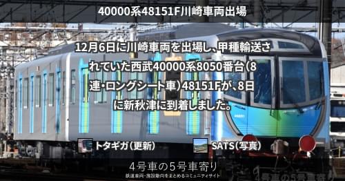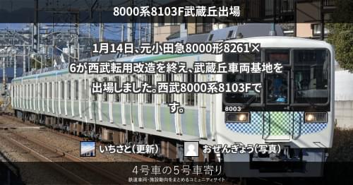 1月14日、元小田急8000形8261×6が西武転用改造を終え、武蔵丘車両基地を出場しました。西武8000系8103Fです。