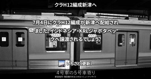7月4日にクラH12編成が新津へ配給されました。インドネシア・KRLジャボタベックへ譲渡されるでしょう。