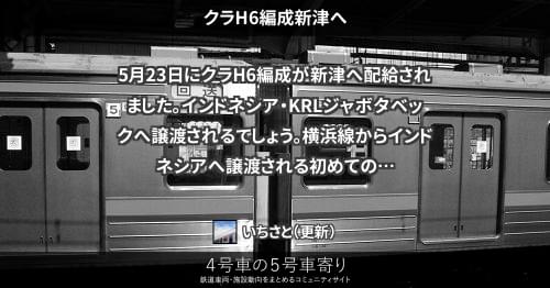 205系(東) クラH6編成新津へ 5月23日にクラH6編成が新津へ配給されました。インドネシア・KRLジャボタベックへ譲渡されるでしょう。 横浜線からインドネシアへ譲渡される初めての編成となります。 2014/05/23 いちさと 205系(東)