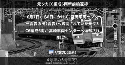 8月22日、元タカC6編成6両が大宮総合車両センターを出場し、高崎車両センターへ回送されました。