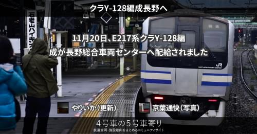 E217系 クラY-128編成長野へ 11月20日、E217系クラY-128編成が長野総合車両センターへ配給されました。 https://4gousya.net/forums/post/%e3%82%af%e3%83%a9y-128%e7%b7%a8%e6%88%90%e3%81%8c%e9%85%8d%e7%b5%a6%e8%bc%b8%e9%80%81 2024/11/20 やりいか E217系