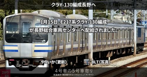 E217系 クラY-130編成長野へ 1月15日、E217系クラY-130編成が長野総合車両センターへ配給されました。 https://4gousya.net/forums/post/%e3%82%af%e3%83%a9y-130%e7%b7%a8%e6%88%90%e3%81%8c%e9%85%8d%e7%b5%a6%e8%bc%b8%e9%80%81 2025/01/15 やりいか E217系