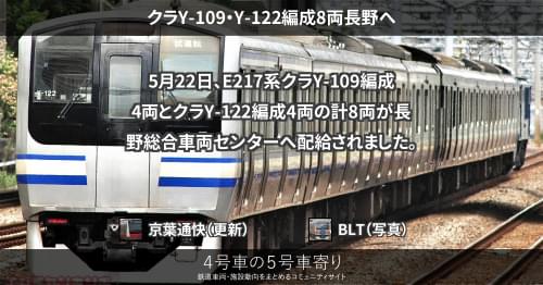 E217系 クラY-109・Y-122編成8両長野へ 5月22日、E217系クラY-109編成4両とクラY-122編成4両の計8両が長野総合車両センターへ配給されました。 https://4gousya.net/forums/post/%e3%82%af%e3%83%a9y-109%e7%b7%a8%e6%88%90%e3%81%a8%e3%82%af%e3%83%a9y-122%e7%b7%a8%e6%88%90%e3%81%8c%e9%85%8d%e7%b5%a6%e8%bc%b8%e9%80%81 2024/05/22 2024/05/23 京葉通快 E217系
