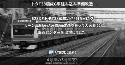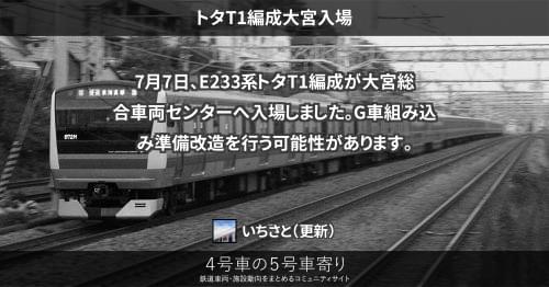 E233系 トタT71編成横浜出場 E233系トタT71編成が6月11日に総合車両製作所横浜事業所を出場しました。当日中に豊田車両センターまで回送されています。 豊田車両センターへの新製投入は12年ぶりとなります。 2020/06/11 いちさと E233系