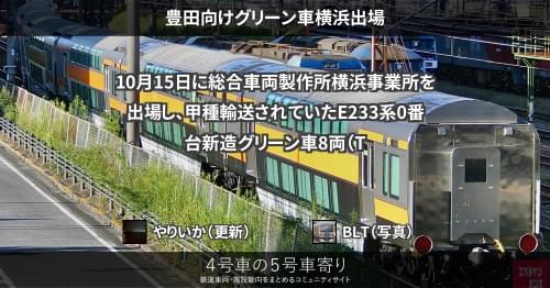 E233系トタT26編成がグリーン車2両(TsdTsd'5)を組み込み12両化され、10月25日より営業運転が確認されました。