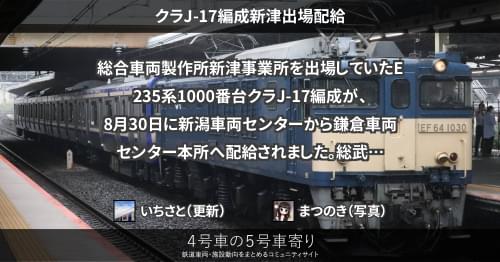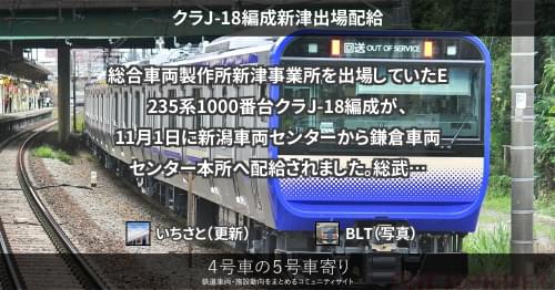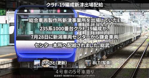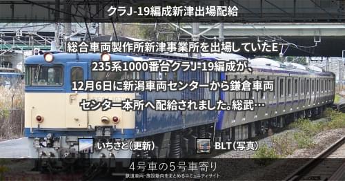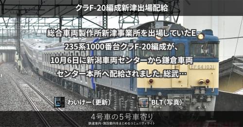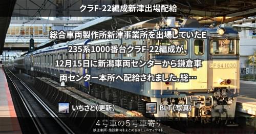 総合車両製作所新津事業所を出場していたE235系1000番台クラF-22編成が、12月15日に新潟車両センターから鎌倉車両センター本所へ配給されました。