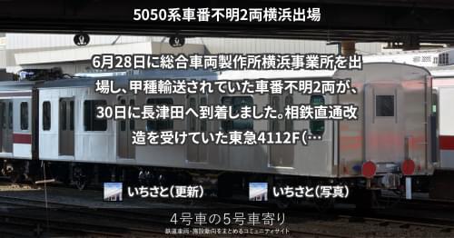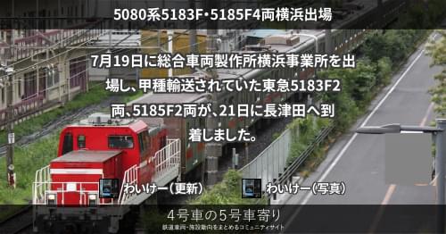 7月19日に総合車両製作所横浜事業所を出場し、甲種輸送されていた東急5183F2両、5185F2両が、21日に長津田へ到着しました。