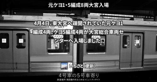 205系(東) 元ケヨ4・9編成8両大宮入場 7月4日から5日にかけて、直江津へ疎開されていた元ケヨ4編成4両、ケヨ9編成4両が八王子経由で大宮総合車両センターへ入場しました。 7月6日 - 入場先訂正 2012/07/05 いちさと 205系(東)