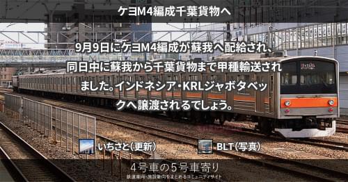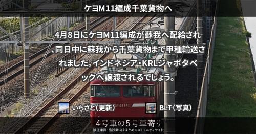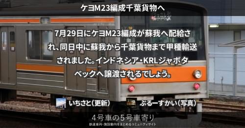 10月21日にケヨM20編成が蘇我へ配給され、同日中に蘇我から千葉貨物まで甲種輸送されました。インドネシア・KRLジャボタベックへ譲渡されるでしょう。