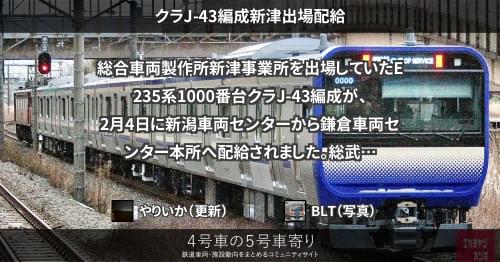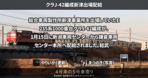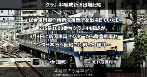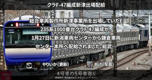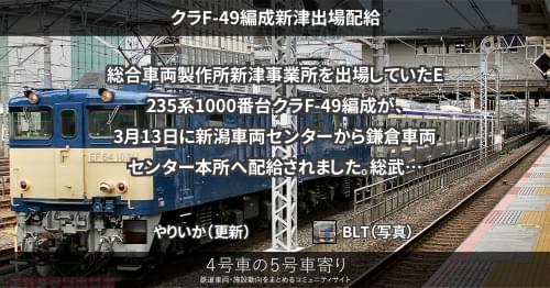 総合車両製作所新津事業所を出場していたE235系1000番台クラF-49編成が、3月13日に新潟車両センターから鎌倉車両センター本所へ配給されました。