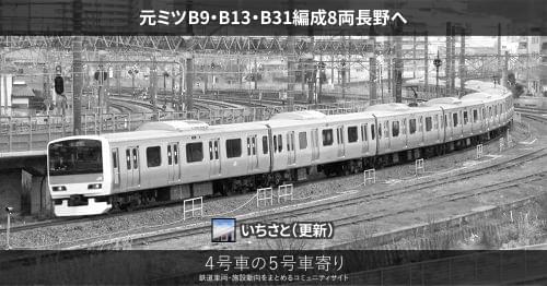 E231系 元ミツB9・B13・B31編成8両長野へ 9月6日9月6日から7日にかけて、元ミツB9編成2両、元ミツB13編成2両、元ミツB31編成4両が大宮総合車両センターから、長野総合車両センターへ配給されました。 元ミツB9、B13編成は武蔵野線転用に伴う余剰車で、元ミツB31編成は伴走車です。 2018/09/07 2018/09/29 いちさと E231系