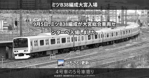 E231系 元ミツB8編成4両八高川越線へ 9月9日から10日にかけて、元ミツB8編成4両が秋田総合車両センターを出場し、東大宮操車場まで配給されました。新ハエ44編成で、10日中に川越車両センターへ回送されています。 2019/09/10 いちさと E231系