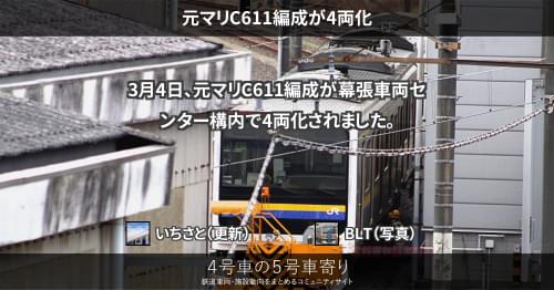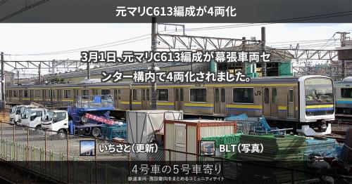 E131系 マリR11編成2両新津出場配給 総合車両製作所新津事業所を出場していたE131系マリR11編成2両が、3月2日に新潟車両センターから京葉車両センターへ配給されました。2日中に幕張車両センターへ回送されています。 初の線路モニタリング装置を搭載した80番台で、1編成単独の配給となりました。 2021/03/02 いちさと E131系