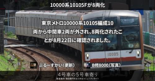 東京メトロ10000系10105編成10両から中間車2両が外され、8両化されたことが8月22日に確認されました。