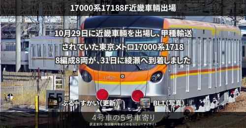 10月29日に近畿車輛を出場し、甲種輸送されていた東京メトロ17000系17188編成8両が、31日に綾瀬へ到着しました。