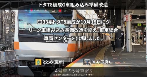 E233系 トタT12編成大宮入場 10月14日、E233系トタT12編成が大宮総合車両センターへ入場しました。 G車組み込み準備改造を行う可能性があります。 2021/10/14 いちさと E233系