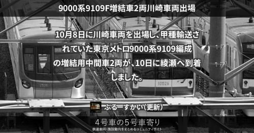 10月8日に川崎車両を出場し、甲種輸送されていた東京メトロ9000系9109編成の増結用中間車2両が、10日に綾瀬へ到着しました。