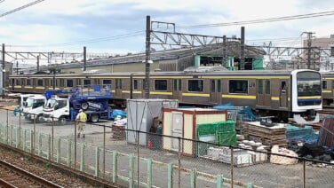 本日、幕張車両センター内においてマリC614編成の5号車のパンタグラフ舟体と避雷器の撤去が確認され、モハ209(モハ208)-2127が抜かれて4両編成へ短編成化されました。