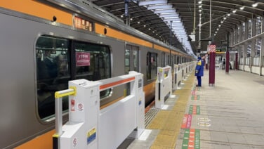 中央快速線でホームドア筐体取付開始