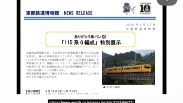 京都鉄道博物館は27日、3月までに引退した115系G編成を本館1階「車両のしくみ/車両工場」エリアにおいて特別展示することを発表しました。展示車両にはG-01編成が予定されています。。