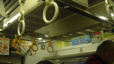 運よく乗車できたのですが、まずスクリーンはE233-1000よりもつやがある画面で案内内容はJRとほぼ同じですが、まず写真のようにどのホームに停車(6,7番線どっちか分からない表示)しているかが分からない表示をしたり、後つけのせいか、結構大きい機器類が天井にあり、その下が多少暗かったり、背が高い人はちょっとつらいかなと思いました。また試験的だからかもしれませんが、JRみたいに所要時間を表示しませんし(JRで表示するところで言うとそこが空欄)駅到着前はどちら側が開くか分からないようで、JRみたいに「こちら側が…」や「反対側が…」という表示はしないで、両側とも「ドアにご注意下さい」とだけ表示しています。広告の種類も少なめです。最後に2000形は加速力がいまいちなので、4連は引退も否定できないようです。