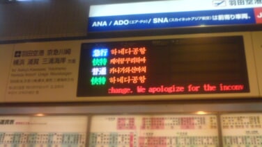 これが品川駅の韓国語と中国語が出る案内装置です。