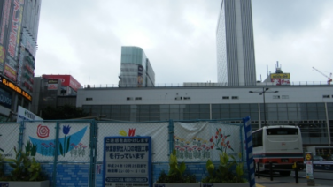 新設部分の真上になる駅前ロータリーには仮囲いがあり、一応工事を行っていることが分かりました。(画像を添付します)