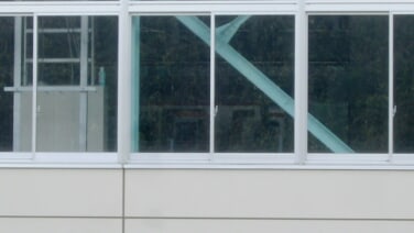 画像を加工して多少見やすくしていますが、外から見える工場の窓は南側にあるため内部が見えにくく、毎回確認に非常に手間取ります。北側は北側で、水路と鉄格子がかかって見えません。
