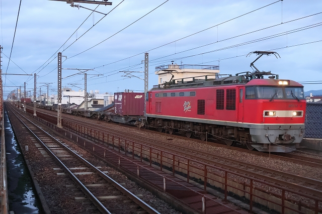 | 補足 | 魚津-東滑川間(富山地鉄本線の電鉄魚津駅付近)、16時26分通過。空コキ多め。31ftコンテナ✕合計4個、20ftコンテナ✕合計2個、20ftタンクコンテナ✕1個積載 |