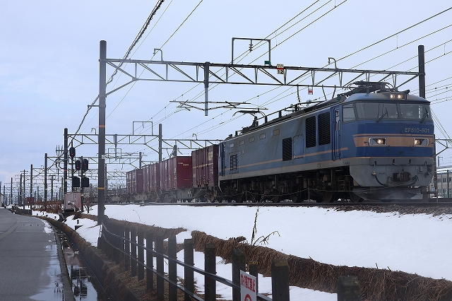 | 補足 | 10日分(札幌タ9日発分)。富山機関区付近にて撮影・確認。遅延、13時52分に通過。20ftコンテナ✕1個以外は12ftコンテナ✕合計11個のみ(31ftコンテナは積載なし)、空コキ非常に多め |