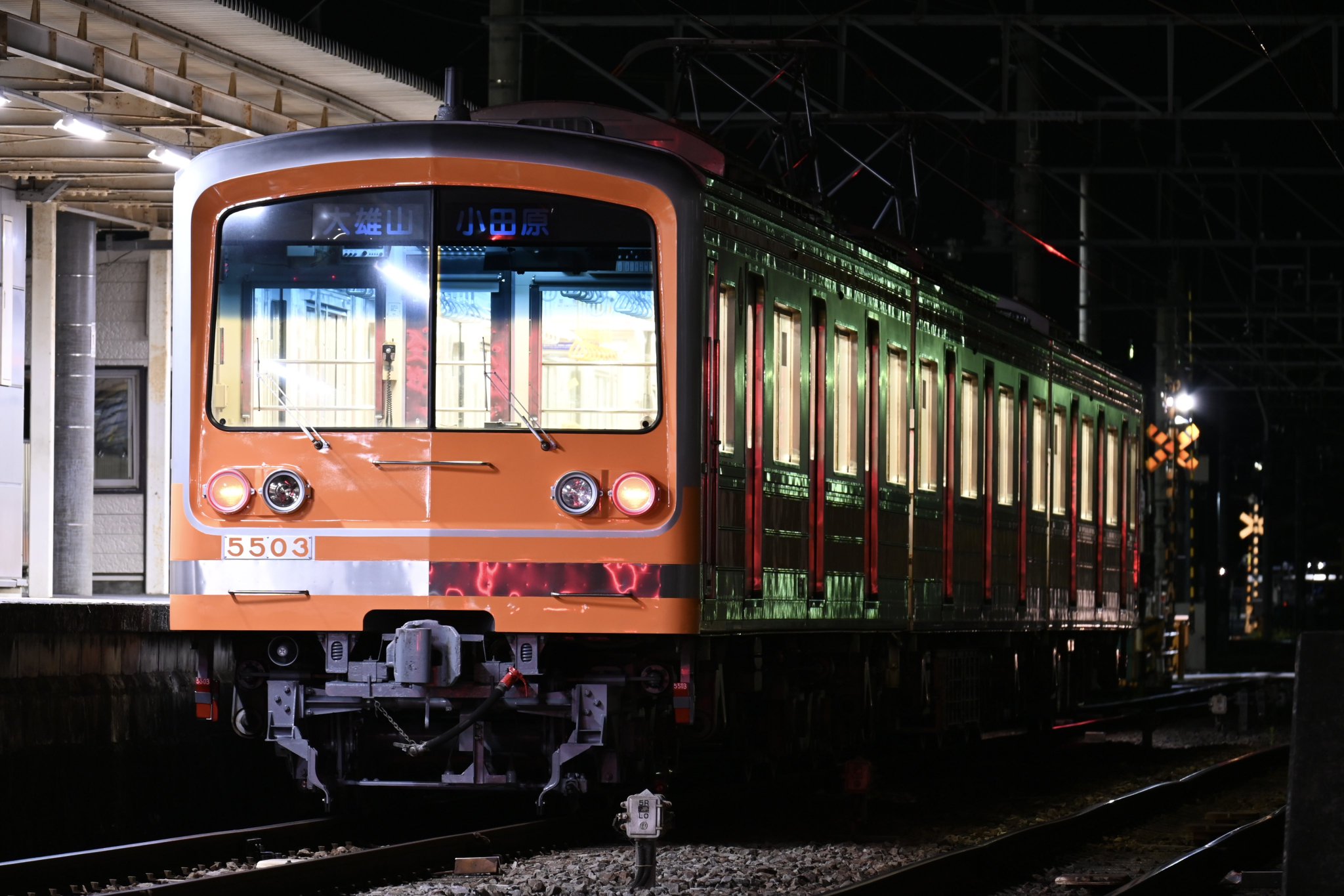 コデぴー (@nonowa2172) on X連日の猛暑に熱帯夜 青帯で入場していた大雄山線も、2ヶ月の検査中にすっかり熟したカラーリングとなっていました🍊 从/*・ヮ・§从 … …!? 伊豆箱根鉄道 5000系5503編成(橙色) 駿豆線内試運転 -