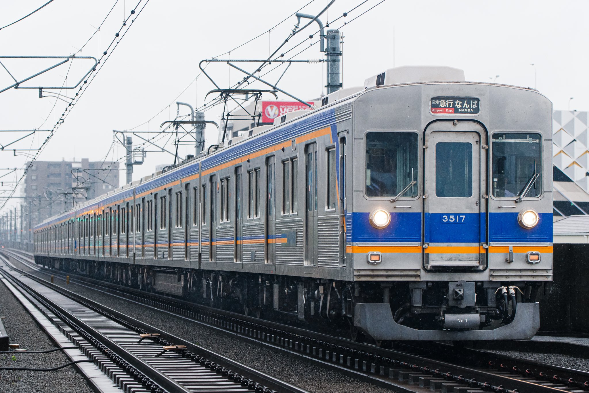 本日12日、南海3000系の3517Fと3515Fが連結され8両で運行されている様子が目撃されています。